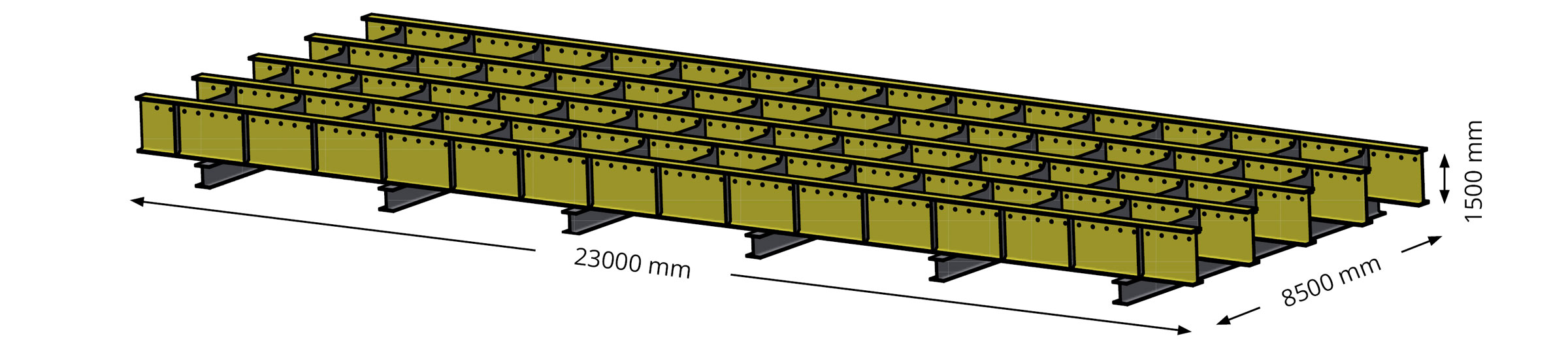 - Dimensions: W: 23000 mm, H: 1500 mm, D: 8500 mm